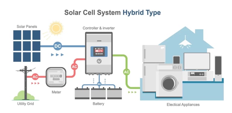 Hybrid solar systems combine on-grid and off-grid features, providing flexibility and reliability in energy supply.