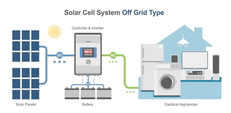 Off-grid solar systems operate independently, storing energy in batteries for use when sunlight is not available.